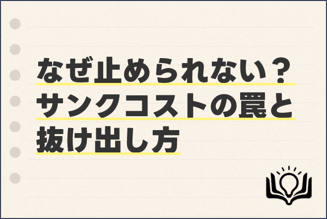 サンクコスト(埋没費用)とは何か、なぜ人は過去に囚われるのかを解説。日々の意思決定に悩むあなたに向けて、未来基準で考える3つの問いを提示し、実践に移せる知恵をお届けします。【滞在時間4分】キーワード: